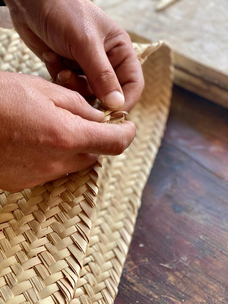 Tissé à la main à partir de feuilles de palmier d'origine éthique au Maroc, ce sac est le compagnon idéal pour les courses au marché, les escapades de week-end ou une journée à la plage.