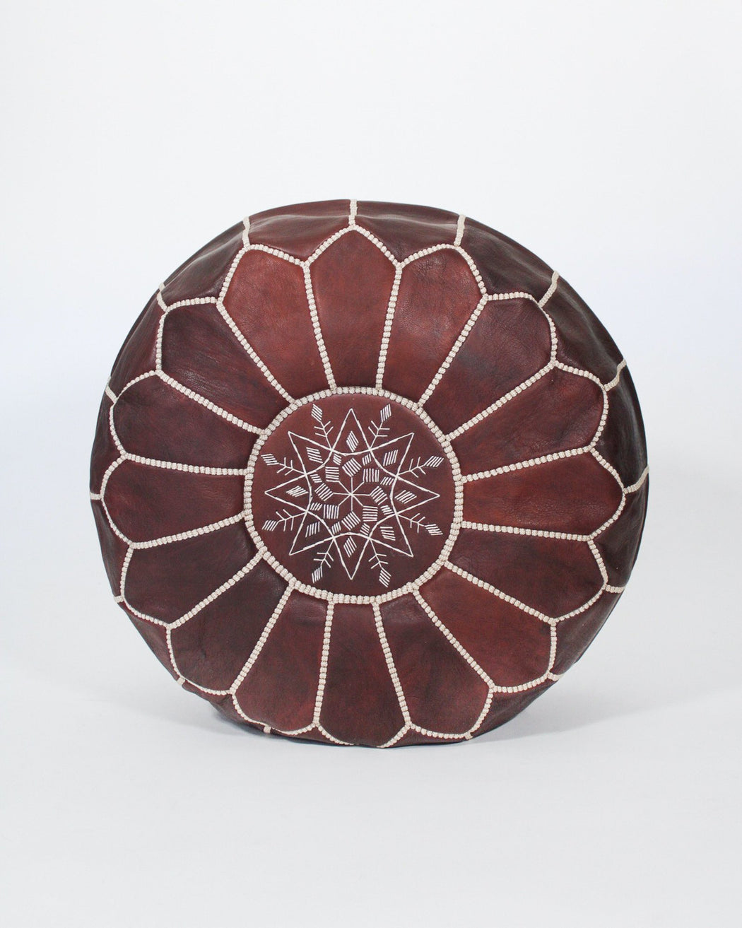 Des morceaux de cuir soigneusement sélectionnés sont teints à la perfection afin de vous proposer ce beau pouf marocain, cousu et brodé à la main, garantissant que chaque pouf individuel créé est une œuvre d'art originale, car aucun pouf n'est identique.