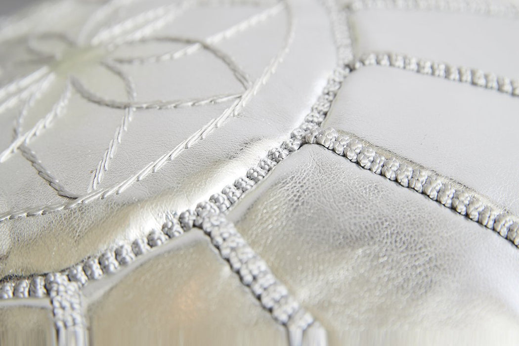 Des morceaux de cuir soigneusement sélectionnés sont teints à la perfection afin de vous proposer ce beau pouf marocain, cousu et brodé à la main, garantissant que chaque pouf individuel créé est une œuvre d'art originale, car aucun pouf n'est identique.